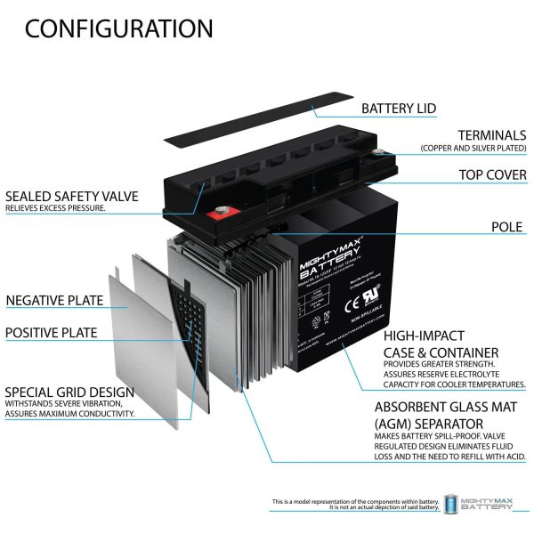 The ML18-12XRP is an Absorbent Glass Mat (AGM) technology with a valve regulated design, that can be used in enclosed and indoor environments without leaking or maintenance, providing a superior performance for thousands of models.