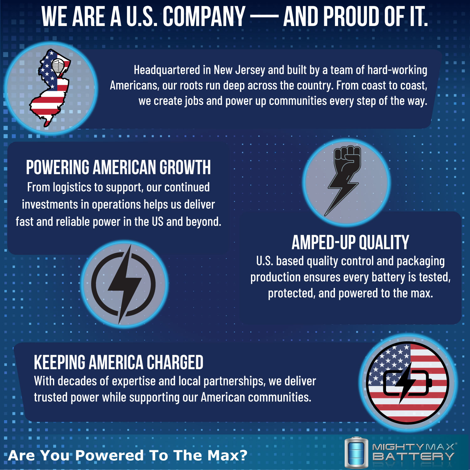 Mighty Max SLA batteries are utilized in a wide variety of applications including; Consumer Electronics, Electric Vehicles, Engine Starters, Golf Carts, Hunting, Lawn and Garden Tools, Medical Mobility, Motorcycles, Power sports, Portable Tools, Solar, Toys and Hobby, Access Control Devices, Emergency Lighting, Security and more.