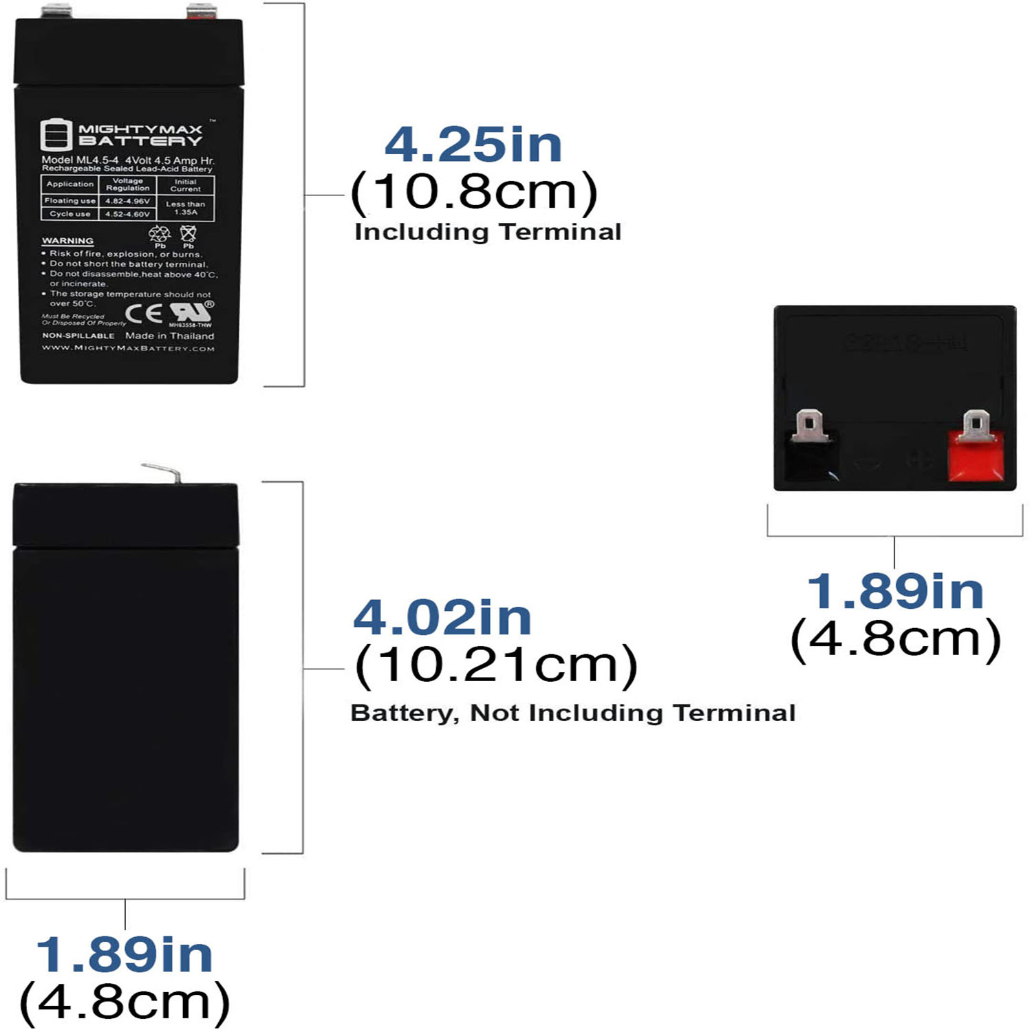 Delivering power when you need it, the Mighty Max ML4.5-4 4 Volt 4.5 AH uses a state of the art, heavy-duty, calcium-alloy grid that provides exceptional performance and service life in both float and cyclic applications.