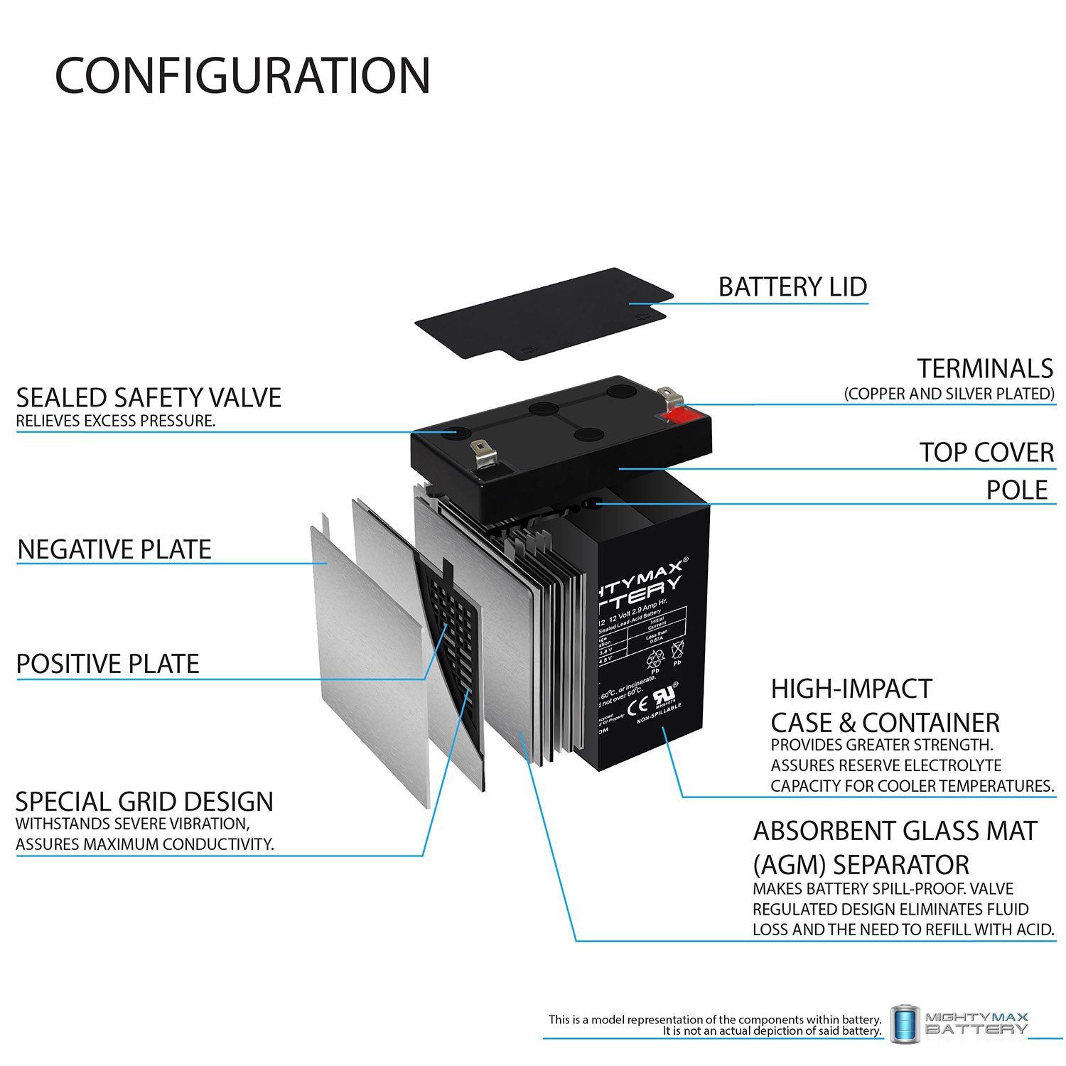 Delivering power when you need it, the Mighty Max ML2.9-12 12 Volt 2.9 AH uses a state of the art, heavy-duty, calcium-alloy grid that provides exceptional performance and service life in both float and cyclic applications.