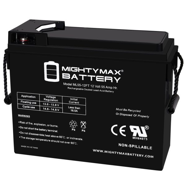 Delivering power when you need it, the Mighty Max ML55-12FT 12 Volt 55 AH uses a state of the art, heavy-duty, calcium-alloy grid that provides exceptional performance and service life in both float and cyclic applications.