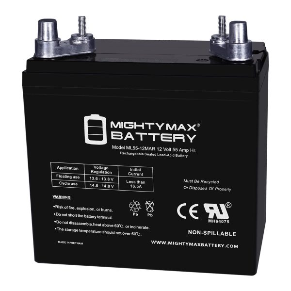 Delivering power when you need it, the Mighty Max ML55-12MAR 12 Volt 55 AH uses a state of the art, heavy-duty, calcium-alloy grid that provides exceptional performance and service life in both float and cyclic applications.