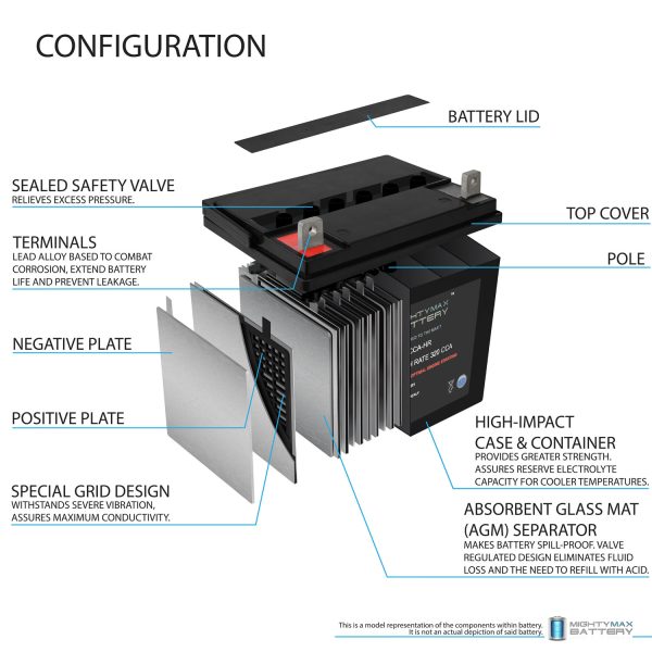 I purchased the Mighty Max ML-U1-CCAHR 12V 320 CCA battery to replace the battery on my Exmark Radius E Series zero turn mower. It arrived well-packed. I charged it overnight and it was easy to install in my mower. Fit perfectly and started the mower right up. Mowed again a few weeks later and it started first time like a charm. Very pleased with this battery!