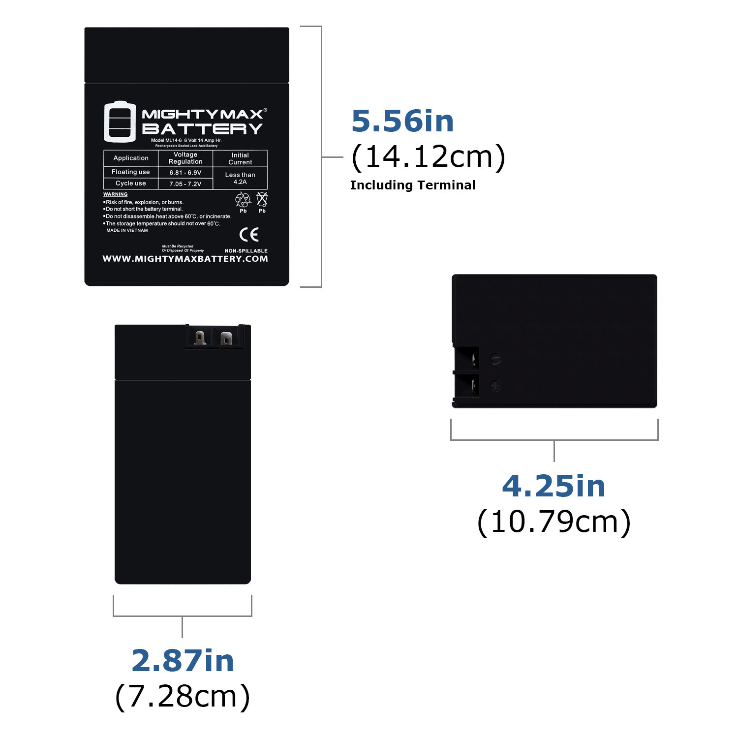 Delivering power when you need it, the Mighty Max ML14-6 6 Volt 14 AH uses a state of the art, heavy-duty, calcium-alloy grid that provides exceptional performance and service life in both float and cyclic applications.