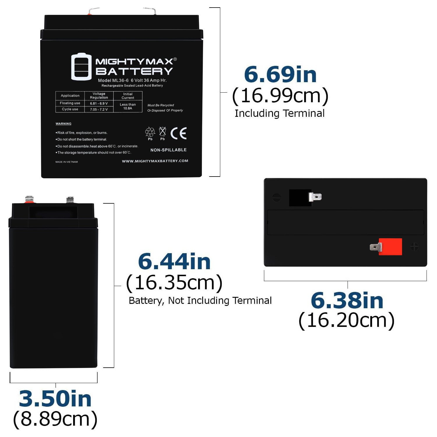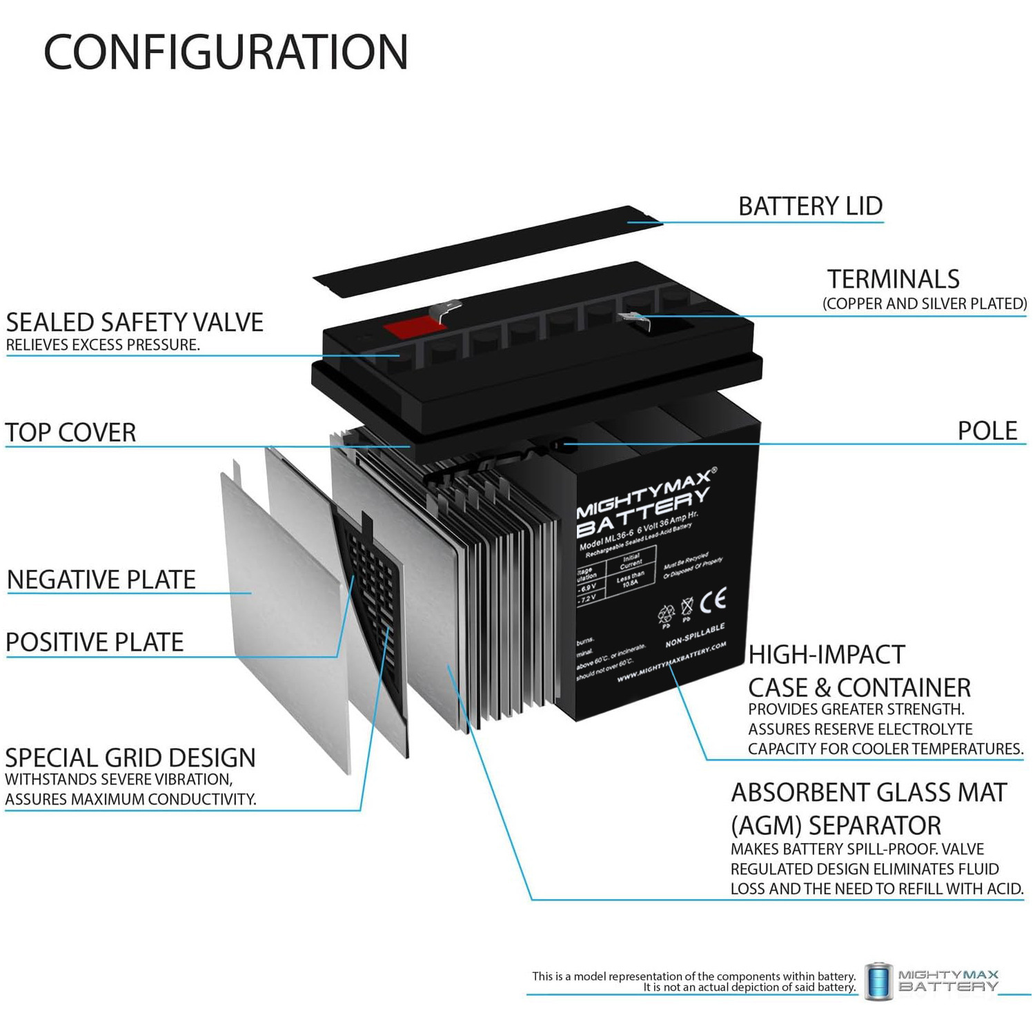 Delivering power when you need it, the Mighty Max ML36-6 6 Volt 36 AH uses a state of the art, heavy-duty, calcium-alloy grid that provides exceptional performance and service life in both float and cyclic applications.
