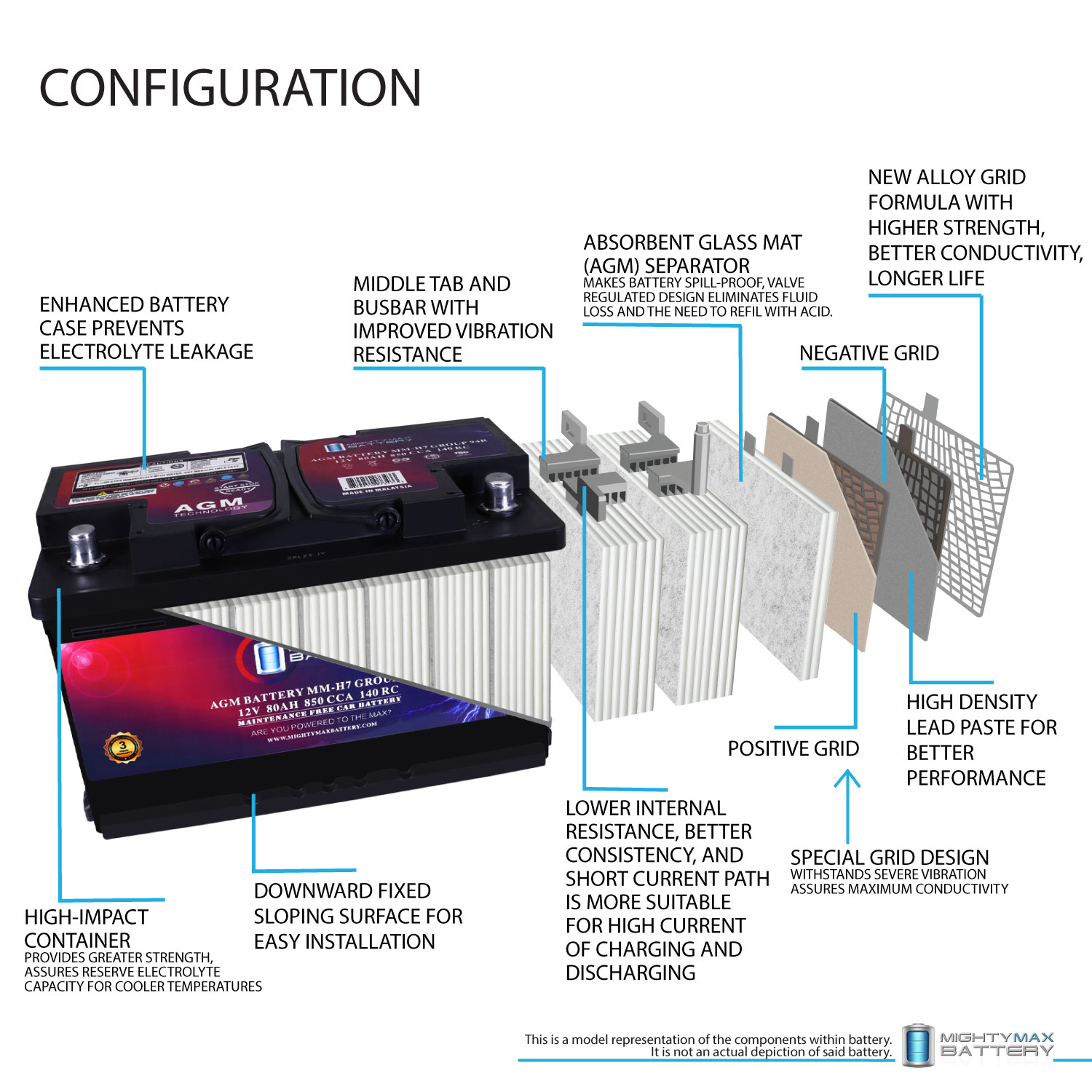 When your engine demands power, the Mighty Max MM-H7 delivers. This Group Size 94R AGM battery is engineered for real-world performance in real-world conditions. With 850 Cold Cranking Amps and a 140-minute Reserve Capacity, it delivers fast starts in freezing mornings, steady performance in scorching heat, and the kind of reliability that doesn’t flinch when the weather turns or the road gets rough.