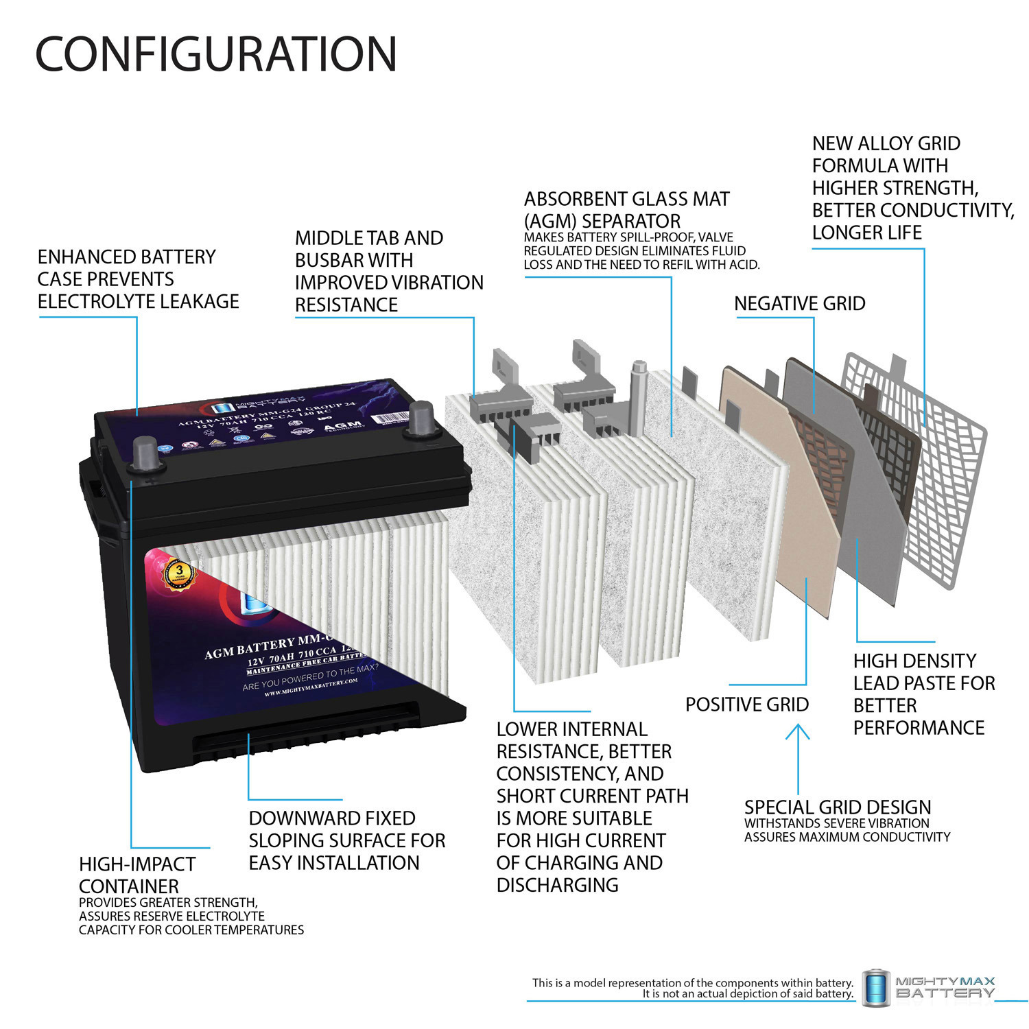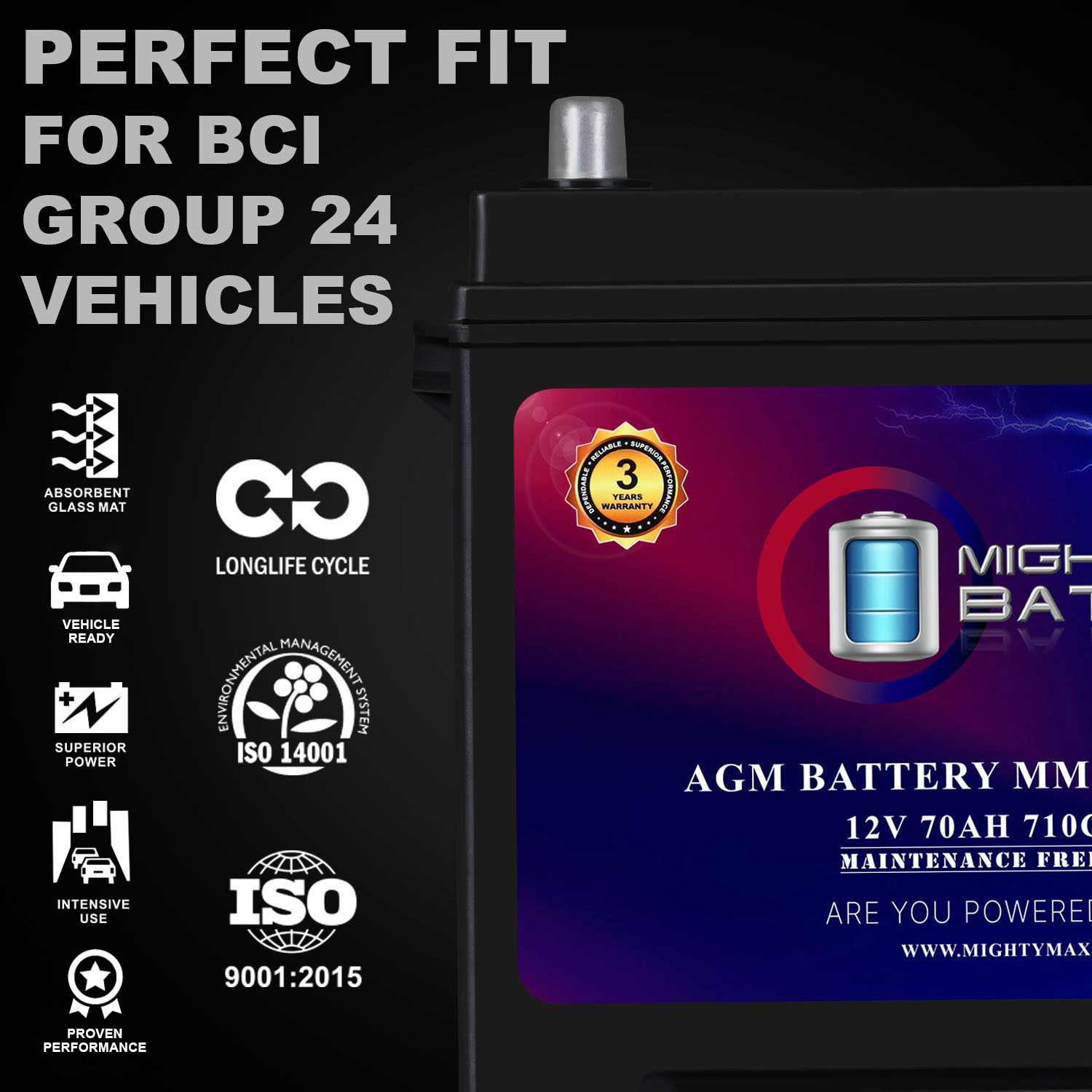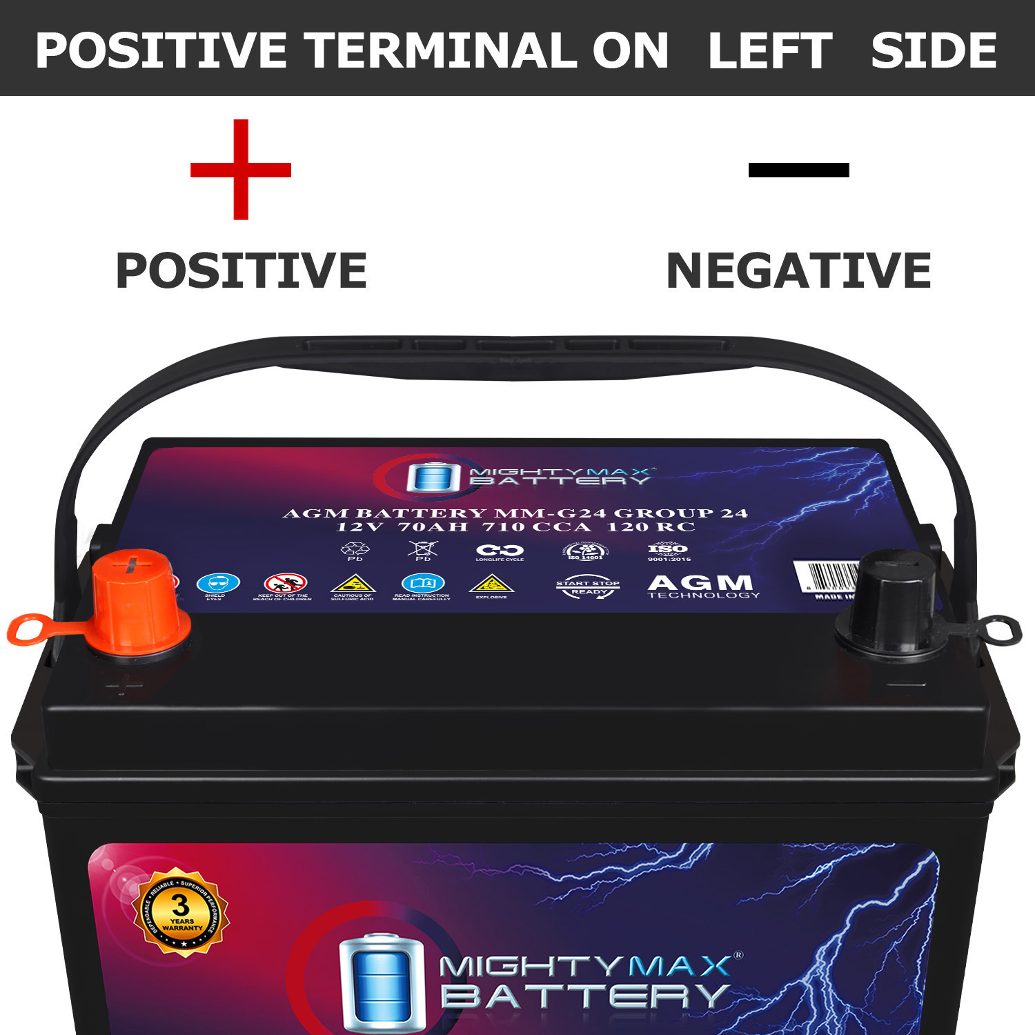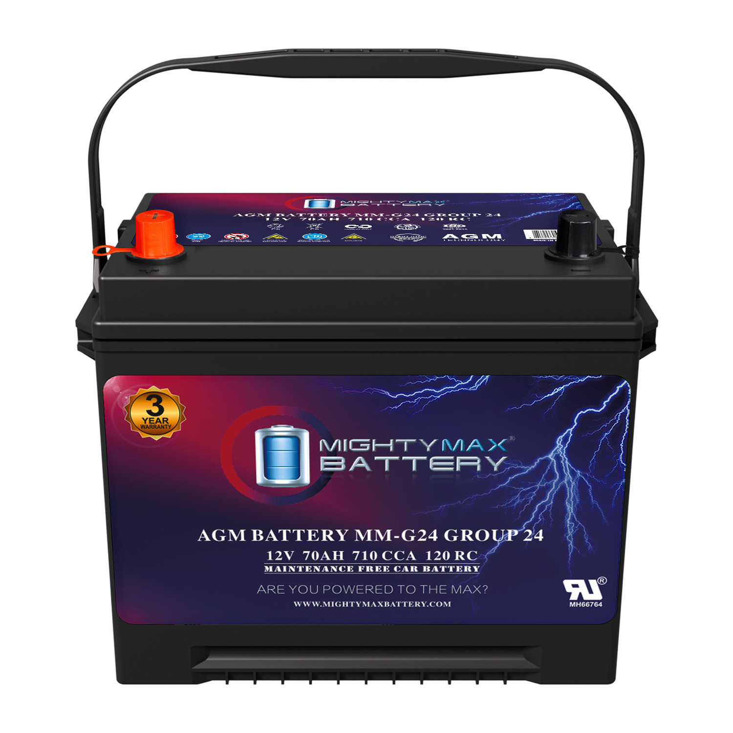 When your engine demands power, the Mighty Max MM-G24 delivers. This Group Size 24 AGM battery is engineered for real-world performance in real-world conditions. With 710 Cold Cranking Amps and a 120-minute Reserve Capacity, it delivers fast starts in freezing mornings, steady performance in scorching heat, and the kind of reliability that doesn’t flinch when the weather turns or the road gets rough.