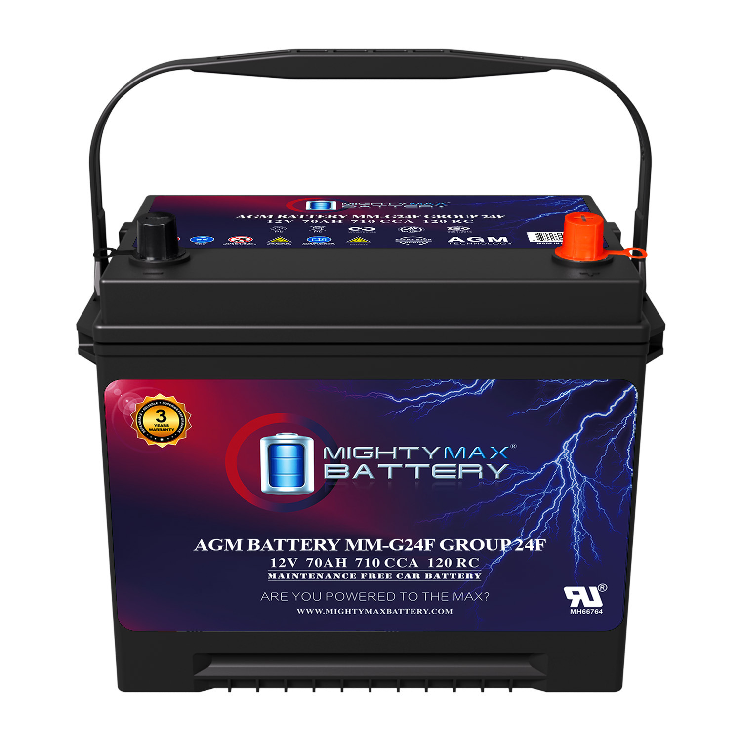 When your engine demands power, the Mighty Max MM-G24F delivers. This Group Size 24F AGM battery is engineered for real-world performance in real-world conditions. With 710 Cold Cranking Amps and a 120-minute Reserve Capacity, it delivers fast starts in freezing mornings, steady performance in scorching heat, and the kind of reliability that doesn’t flinch when the weather turns or the road gets rough.