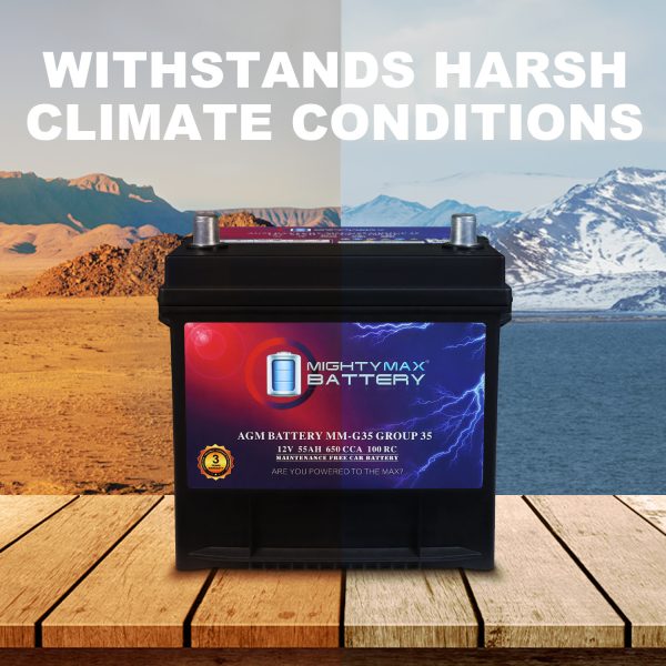MM-G35 Start and Stop Car BCI Group Size 35 12V 55Ah, 100RC, 650 CCA Rechargeable AGM Car battery