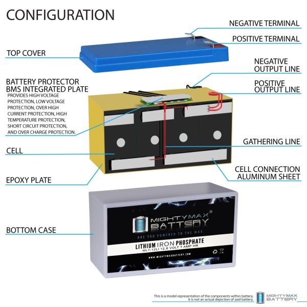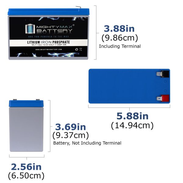 Invest in power with the Mighty Max 12V 7ah Lithium Iron Phosphate Battery. The ML7-12LI will take your deep cycle battery experience to a whole new horizon. Manufactured with the highest quality components and the customers safety in mind, this battery contains a battery management system (BMS). BMS provides all kinds of protection for the battery and customer, equipped with Over charge and short circuit protection. Weighing only 1.70 lbs. and being a direct drop in replacement for its sister sealed lead acid and Gel batteries which weigh a hefty 5.00 lbs. Lighter, stronger and longer life span with 2500 cycles makes this the ideal battery for all your Deep Cycle applications such as, Solar / wind  energy systems, Off Grid systems, RV, Camping, Backup power systems and much more.