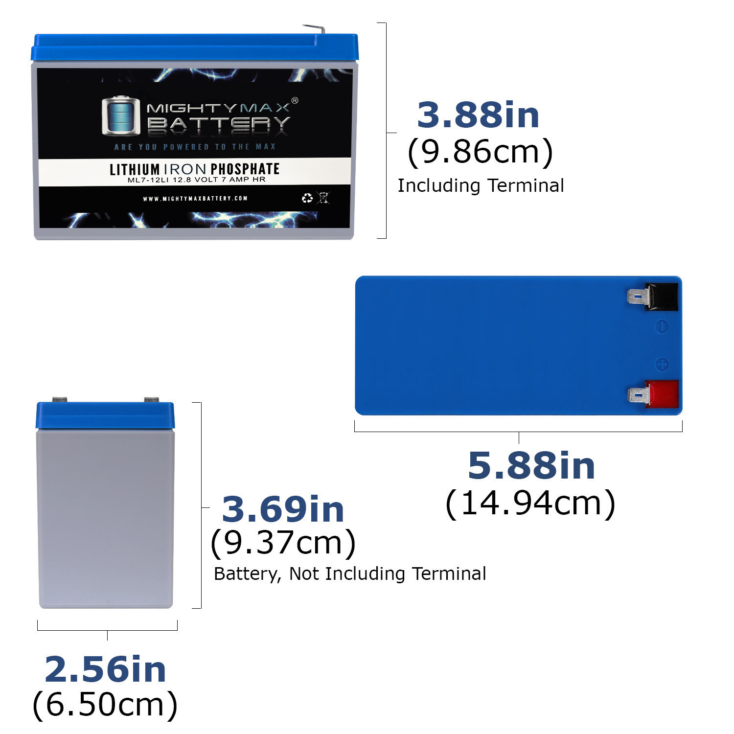 Invest in power with the Mighty Max 12V 7ah Lithium Iron Phosphate Battery. The ML7-12LI will take your deep cycle battery experience to a whole new horizon. Manufactured with the highest quality components and the customers safety in mind, this battery contains a battery management system (BMS). BMS provides all kinds of protection for the battery and customer, equipped with Over charge and short circuit protection. Weighing only 1.70 lbs. and being a direct drop in replacement for its sister sealed lead acid and Gel batteries which weigh a hefty 5.00 lbs. Lighter, stronger and longer life span with 2500 cycles makes this the ideal battery for all your Deep Cycle applications such as, Solar / wind energy systems, Off Grid systems, RV, Camping, Backup power systems and much more.