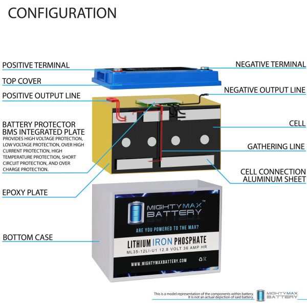 Mighty Max Battery ML35-12LI – 12 Volt 35 AH Deep Cycle Lithium Iron Phosphate (LiFePO4) Rechargeable and Maintenance Free Battery