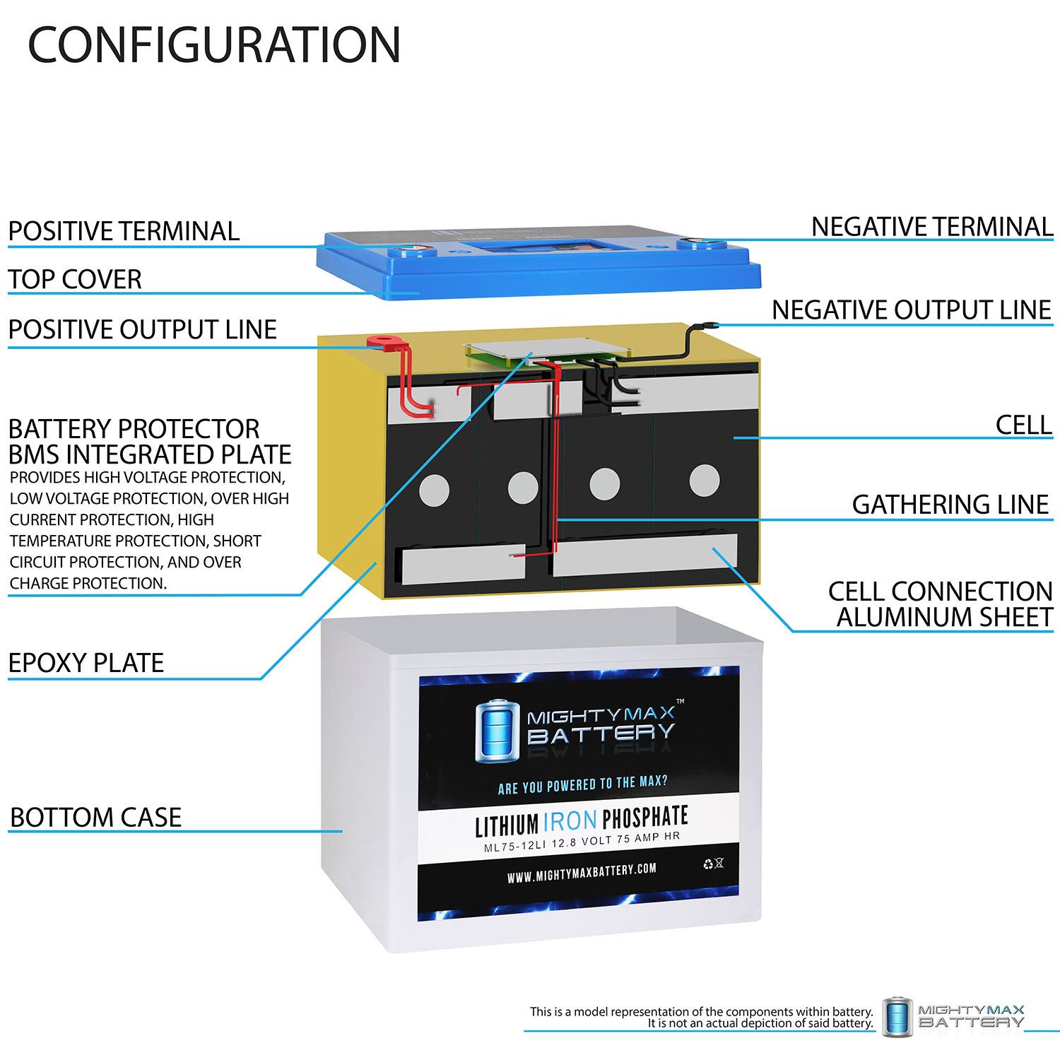 Mighty Max Battery ML75-12LI – 12 Volt 75 AH Deep Cycle Lithium Iron Phosphate (LiFePO4) Rechargeable and Maintenance Free Battery