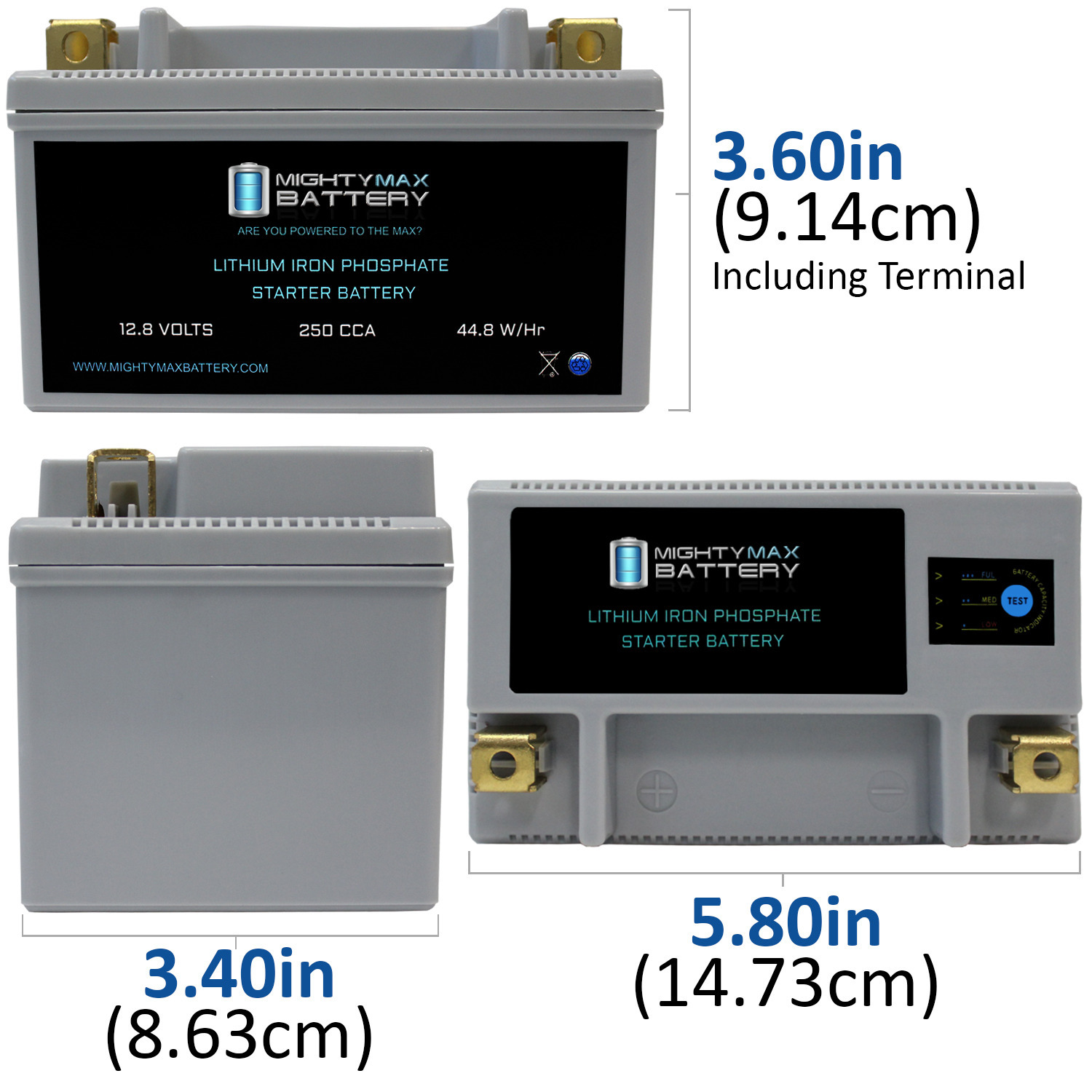 Mighty Max Lithium Iron Phosphate (LiFePO4) engine start batteries are designed to replace Flooded, AGM, and Gel cell lead acid batteries in Power Sport applications such as motorcycles, ATVs, personal water craft, lawn mowers, utility vehicles, scooters, and dirt bikes.