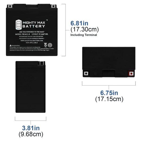 YB16CL-B 12V 19AH SLA Replacement Battery Compatible with Yamaha FX FZR FZS VXS VXR 09-13