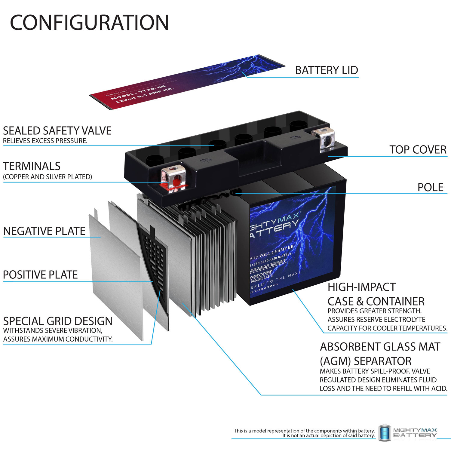 Premium quality absorbed glass mat technology (AGM) is ideal for ATVs, Motorcycles, Personal Watercraft, Jet Ski’s, Snowmobiles and more.