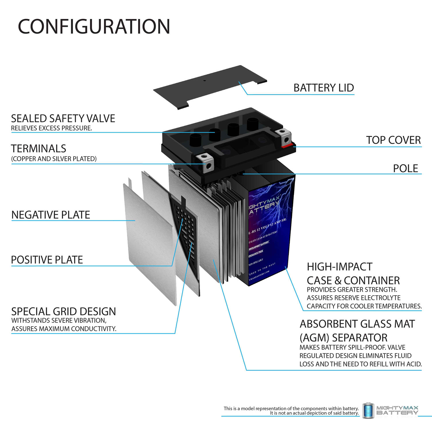 Premium quality absorbed glass mat technology (AGM) is ideal for ATVs, Motorcycles, Personal Watercraft, Jet Ski’s, Snowmobiles and more.