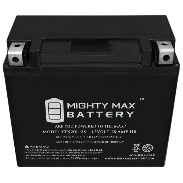 YTX20L-BS 12V, 18Ah, AGM, Replacement Battery Compatible with Arctic Cat 450 Alterra 23-24