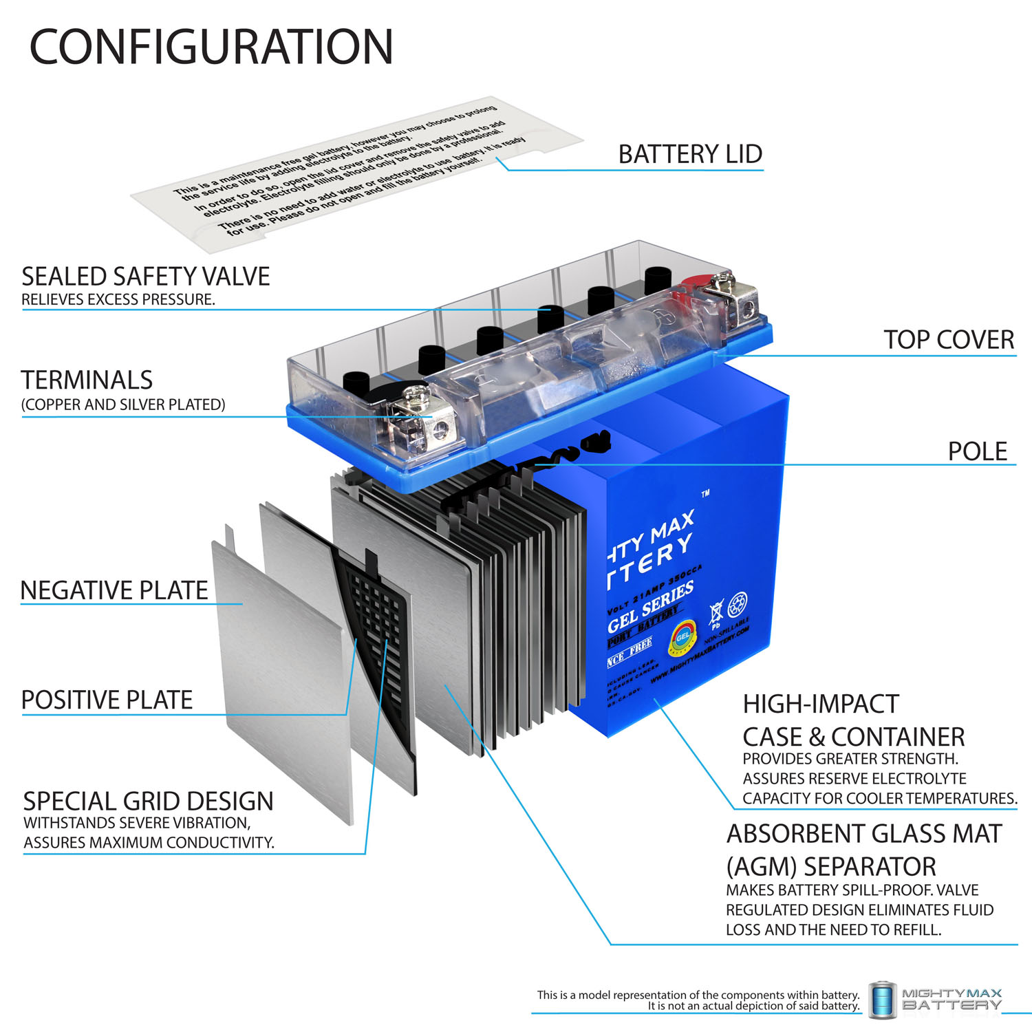 The YTX24HL-BS GEL is a 12V 21AH GEL (Maintenance Free) battery. Requires no addition of water during the life of the battery. The Mighty Max YTX24HL-BS GEL is a TRUE DEEP CYCLE battery that can be mounted in any position, requires no maintenance. When a Gel Cell battery is charged, no hazardous fumes escape the battery case, gases are processed within the battery itself.