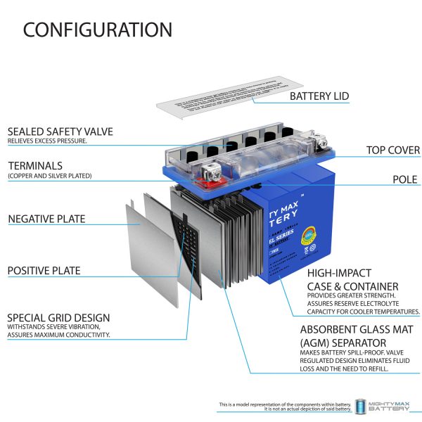 The YTX9-BS GEL is a 12V 8AH GEL (Maintenance Free) battery. Requires no addition of water during the life of the battery. The Mighty Max YTX9-BS GEL is a TRUE DEEP CYCLE battery that can be mounted in any position, requires no maintenance. When a Gel Cell battery is charged, no hazardous fumes escape the battery case, gases are processed within the battery itself.