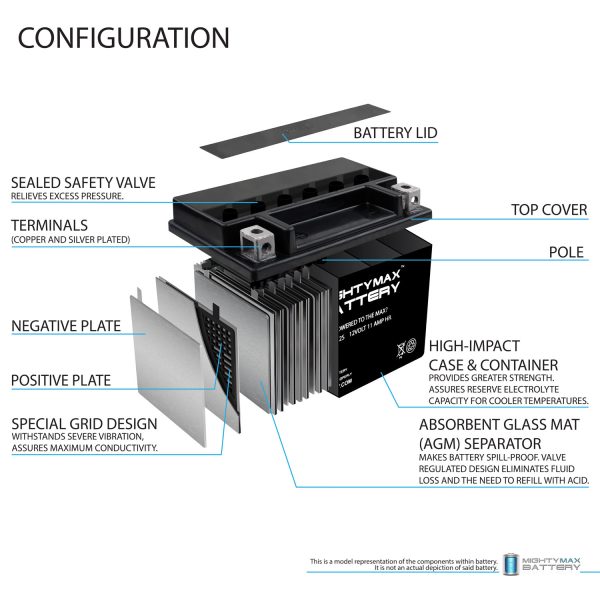 Premium quality absorbed glass mat technology (AGM) is ideal for ATVs, Motorcycles, Personal Watercraft, Jet Ski’s, Snowmobiles and more.
