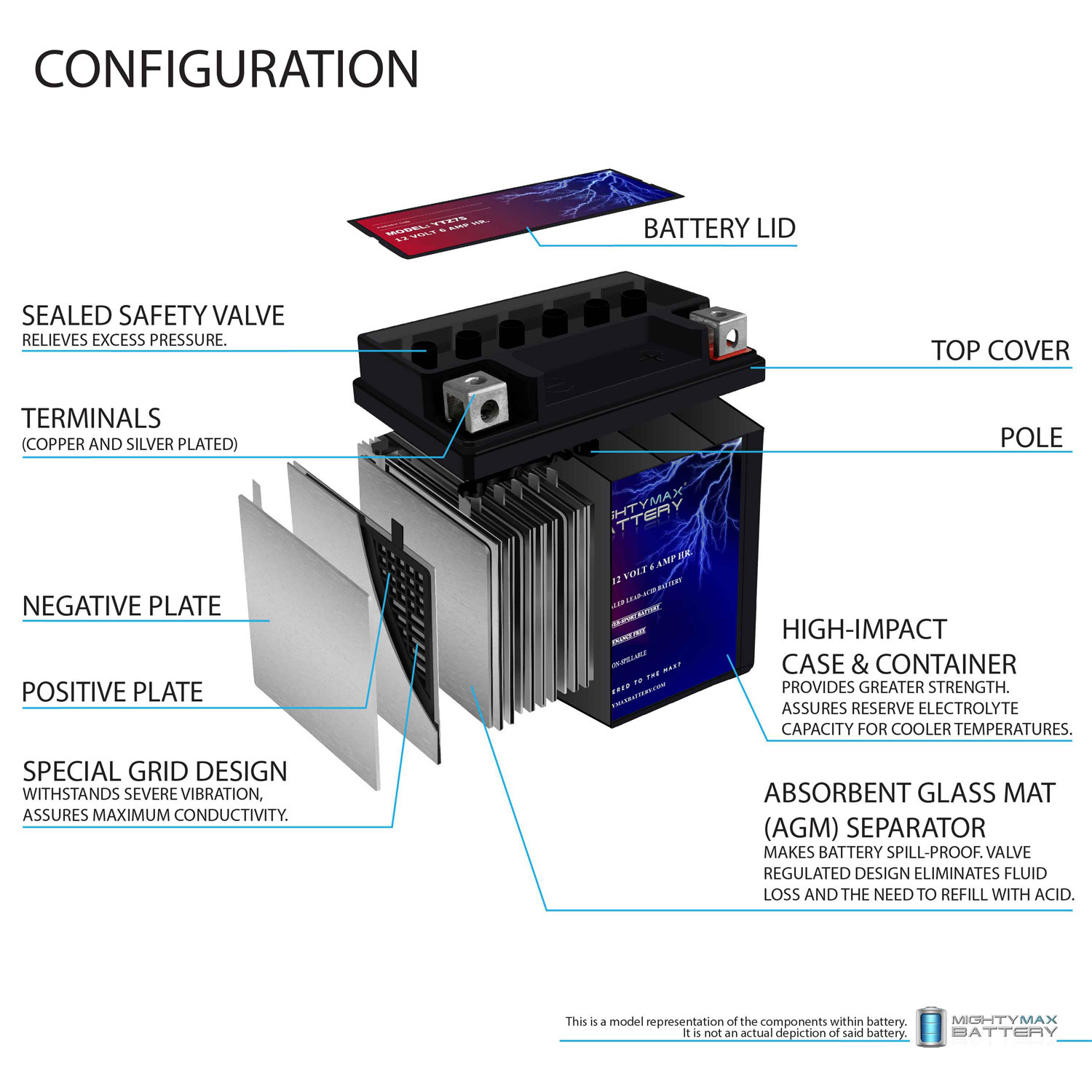 Premium quality absorbed glass mat technology (AGM) is ideal for ATVs, Motorcycles, Personal Watercraft, Jet Ski’s, Snowmobiles and more.
