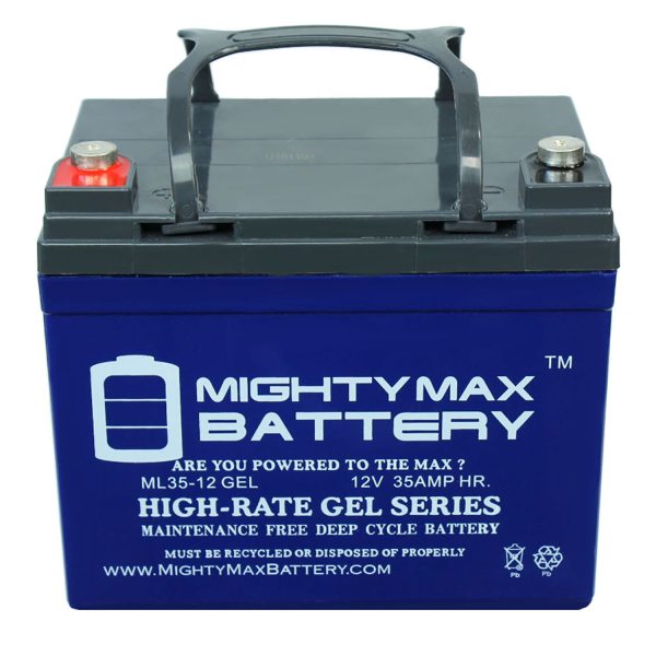 Delivering power when you need it, the Mighty Max ML35-12GEL 12 Volt 35 AH (Maintenance Free) battery. Requires no addition of water during the life of the battery. The Mighty Max ML35-12 GEL is a TRUE DEEP CYCLE battery that can be mounted in any position, requires no maintenance. When a Gel Cell battery is charged, no hazardous fumes escape the battery case, gases are processed within the battery itself.