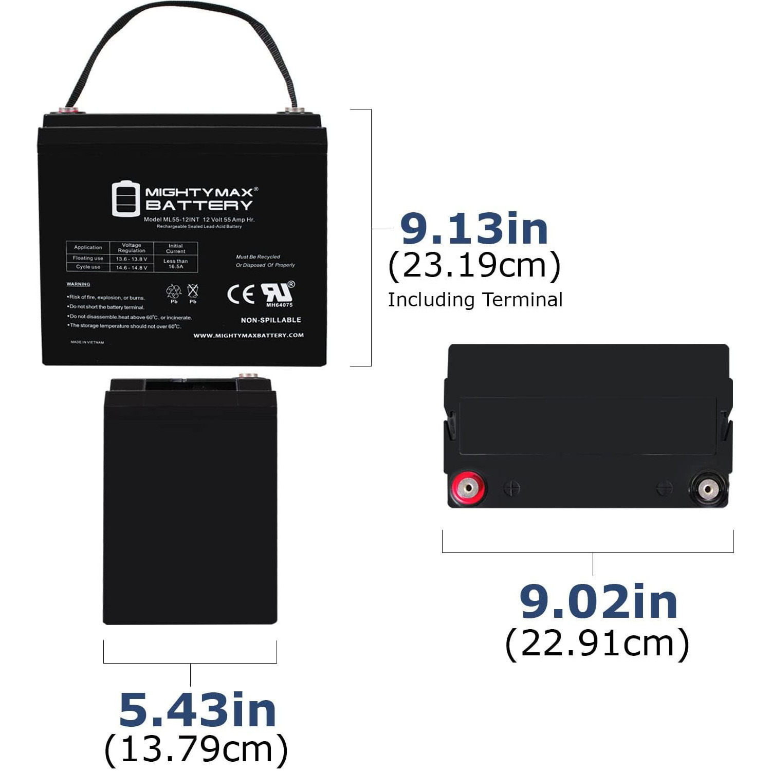 Delivering power when you need it, the Mighty Max ML55-12 Internal Thread 12 Volt 55 AH uses a state of the art, heavy-duty, calcium-alloy grid that provides exceptional performance and service life in both float and cyclic applications.